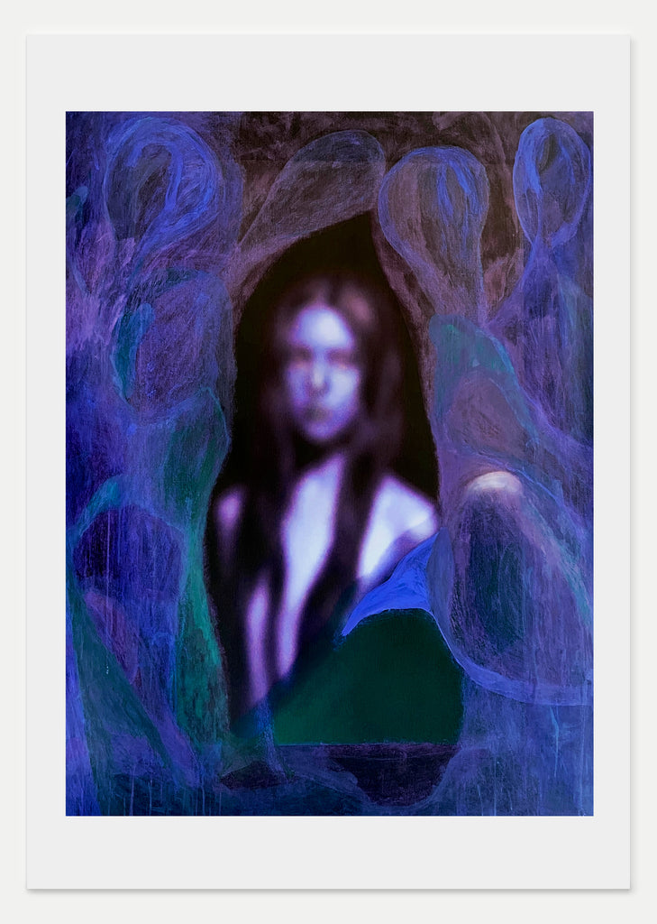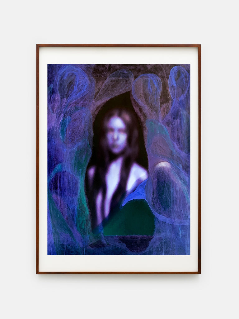 The edition Our Light is a Voice (Inversion), 2025, portrays a figure surrounded by phantom-like figures, captured in a moment of immanence. The photograph, originally transferred to negative for painting, reappears in positive in this edition. It was created several years ago in collaboration with Ali during a nude photo shoot in Berlin.